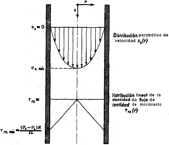 La ecuación (4) es la distribución de la densidad de flujo de cantidad de movimiento.