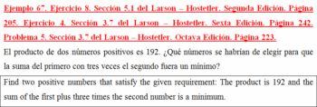 Problema 5. Sección 3.7 del Larson – Hostetler. Octava Edición. Página 223.