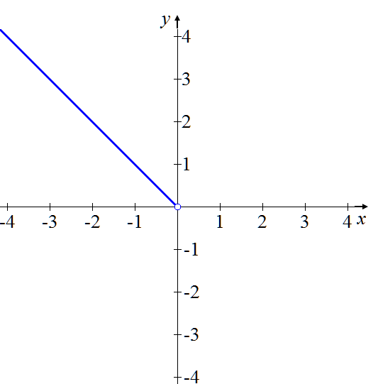Obsérvese que el punto ( 0 , 0 ) no pertenece a la gráfica de esta rama de la función (x < 0), por lo tanto dicho punto se ilustra como ○.