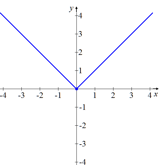 Una vez analizada cada rama, se obtiene la gráfica siguiente para la función f (x) = | x |.