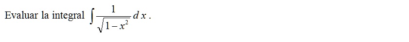 Evaluar la integral \( \displaystyle \int \frac{1}{\sqrt{1-x^2}}d\,x\) usando una sustitución trigonométrica.