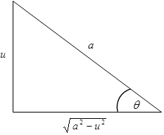 \( \displaystyle \tan\theta=\frac{u}{\sqrt{a^2-u^2}}\) (2)
