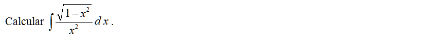 Calcular \( \displaystyle \int\frac{\sqrt{1-x^2}}{x^2}d\,x\).