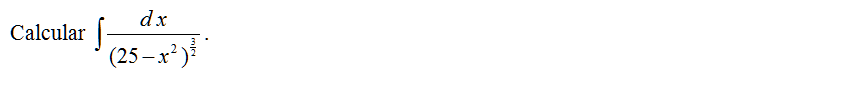 Calcular \( \displaystyle \int\frac{d\;x}{(25-x^2)^{\frac{3}{2}}}\).