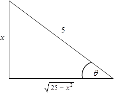 \(\displaystyle\sqrt{25 – x^2}= \sqrt{25 – 25 \sin^2 \theta} \)