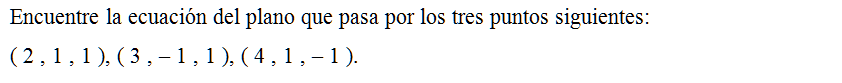 Encuentre la ecuación del plano que pasa por los tres puntos siguientes: