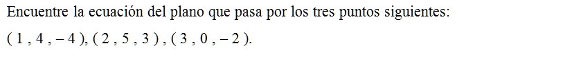 Encuentre la ecuación del plano que pasa por los tres puntos siguientes: