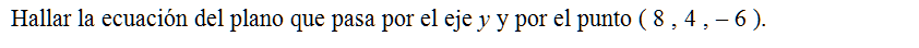 Hallar la ecuación del plano que pasa por el eje y y por el punto ( 8 , 4 , – 6 ).
