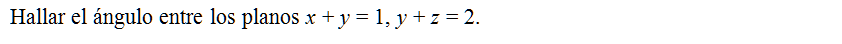 Hallar el ángulo entre los planos x + y = 1, y + z = 2.