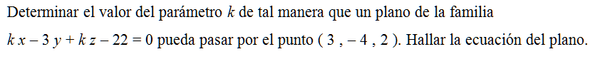Determinar el valor del parámetro k de tal manera que un plano de la familia