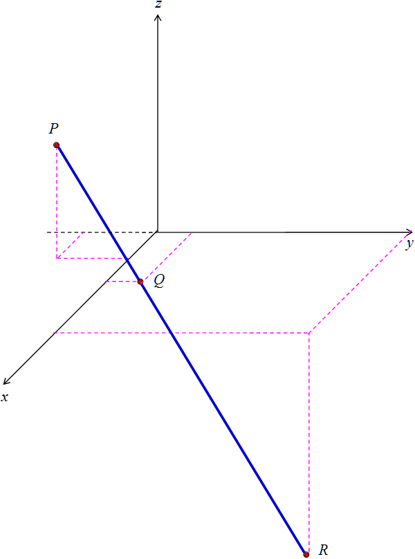 PR = (4 – 1) i + [7 – (–2)] j + (–6 – 3) k