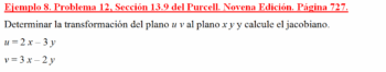 Determinar la transformación del plano u v al plano x y y calcule el jacobiano.