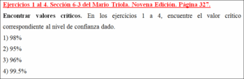 Ejercicios 1 al 4. Sección 6-3 del Mario Triola. Novena Edición. Página 327.