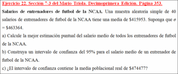 Ejercicio 22. Sección 7-3 del Mario Triola. Decimoprimera Edición. Página 353.