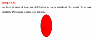 Un disco de radio R tiene una distribución de carga superficial σ0, donde σ0 es una constante. Determinar la carga total del disco.