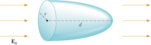 Calculate the total electric flux through the paraboloidal surface due to a uniform electric field of magnitude E0 in the direction shown in Figure.