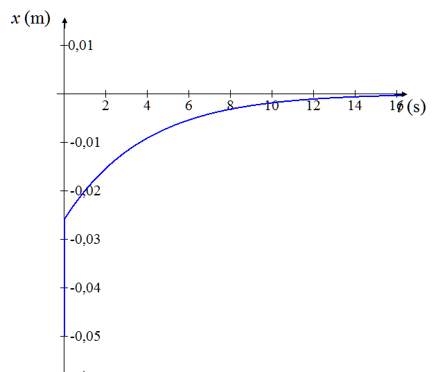 x (t) = – 0.026 e – 0.2616 t – 0.024 e – 1249.7384 t, x = [m], t = [s]