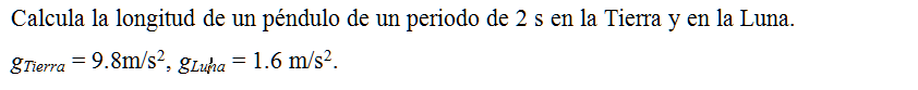 Calcula la longitud de un péndulo de un periodo de 2 s en la Tierra y en la Luna.
