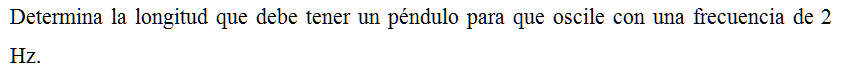 Determina la longitud que debe tener un péndulo para que oscile con una frecuencia de 2 Hz.