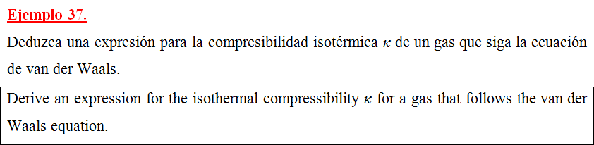 Deduzca una expresión para la compresibilidad isotérmica κ de un gas que siga la ecuación de van der Waals.