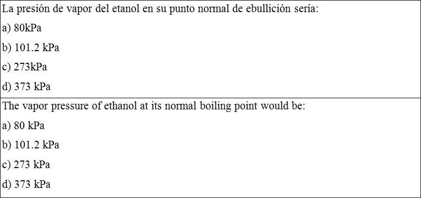 La presión de vapor del etanol en su punto normal de ebullición sería:
