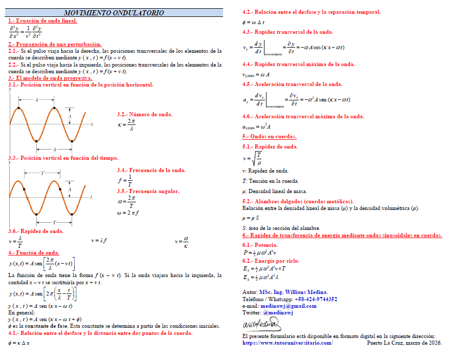 Formulario de movimiento ondulatorio.