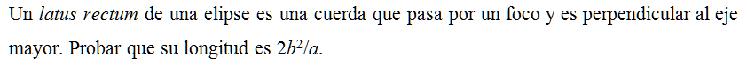 Un latus rectum de una elipse es una cuerda que pasa por un foco y es perpendicular al eje mayor. Probar que su longitud es 2b2/a.
