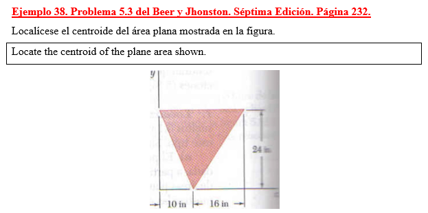 Localícese el centroide del área plana mostrada en la figura.