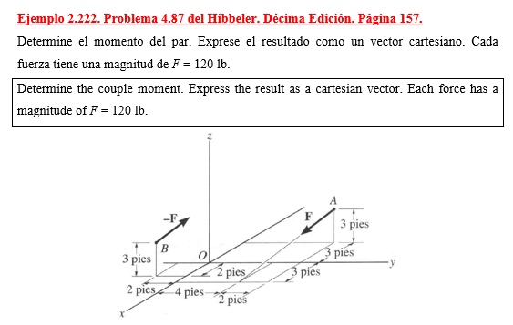 Determine el momento del par. Exprese el resultado como un vector cartesiano. Cada fuerza tiene una magnitud de F = 120 lb.
