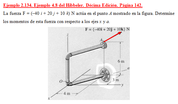 La fuerza F = (–40 i + 20 j + 10 k) N actúa en el punto A mostrado en la figura. Determine los momentos de esta fuerza con respecto a los ejes x y a.