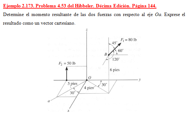 Determine el momento resultante de las dos fuerzas con respecto al eje Oa. Exprese el resultado como un vector cartesiano.