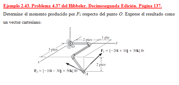 Determine el momento producido por F1 respecto del punto O. Exprese el resultado como un vector cartesiano.