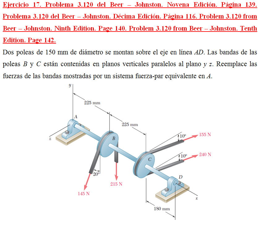 Problema 3.120 del Beer – Johnston. Décima Edición. Página 116.