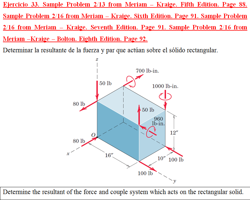 Sample Problem 2/16 from Meriam –Kraige – Bolton. Eighth Edition. Page 92.