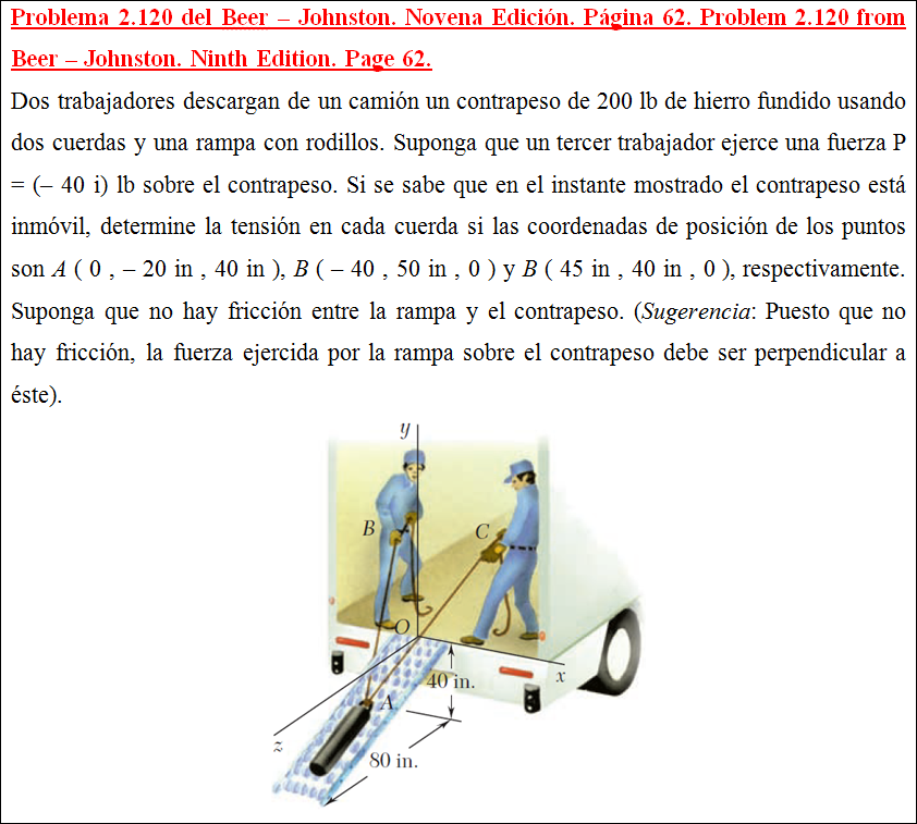 Problema 2.120 del Beer – Johnston. Novena Edición. Página 62.