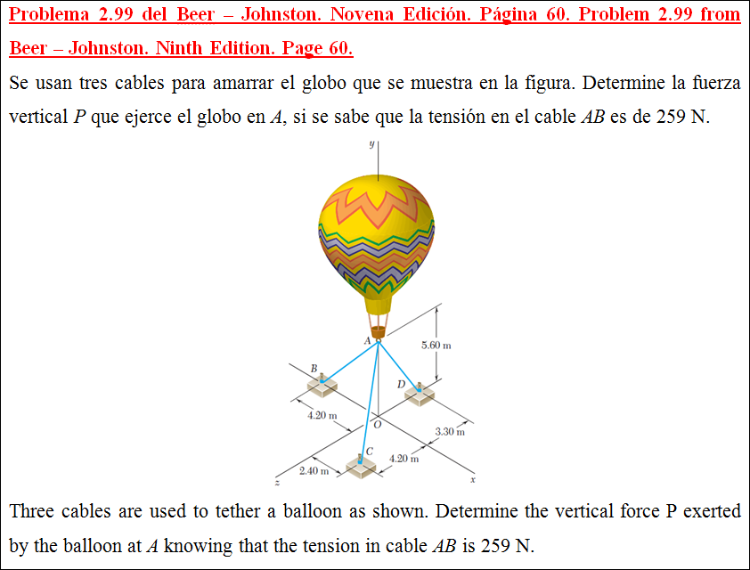 Problema 2.99 del Beer – Johnston. Novena Edición. Página 60.