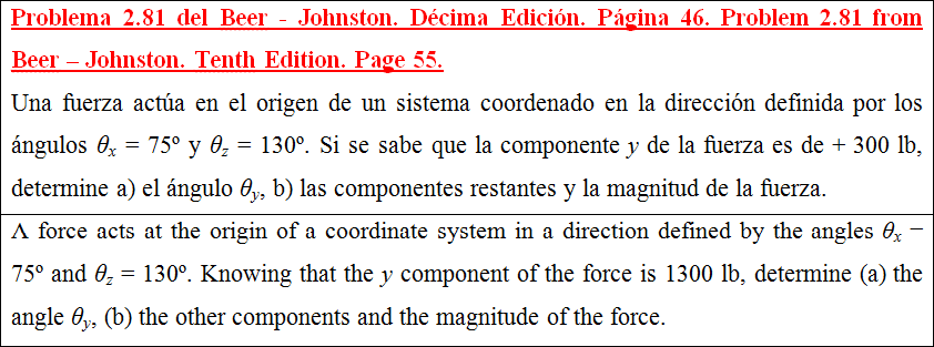 Problema 2.81 del Beer – Johnston. Décima Edición. Página 46.