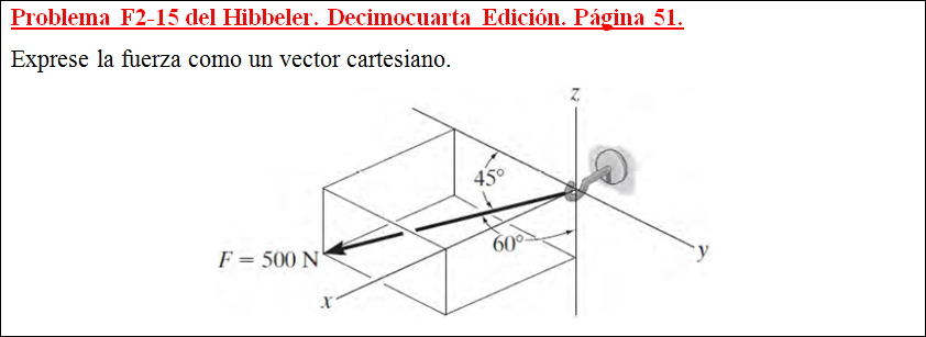 Problema F2-15 del Hibbeler. Decimocuarta Edición. Página 51.