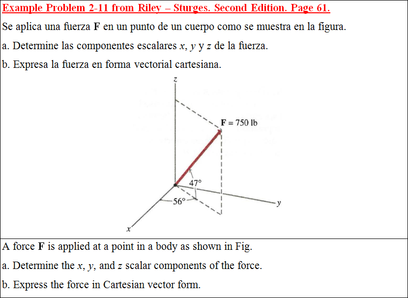 a. Determine las componentes escalares x, y y z de la fuerza.