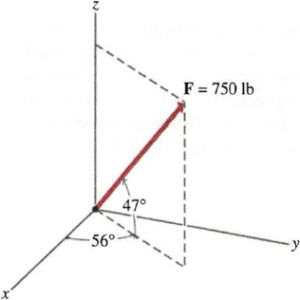 a. Determine the x, y, and z scalar components of the force.