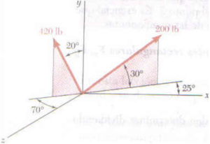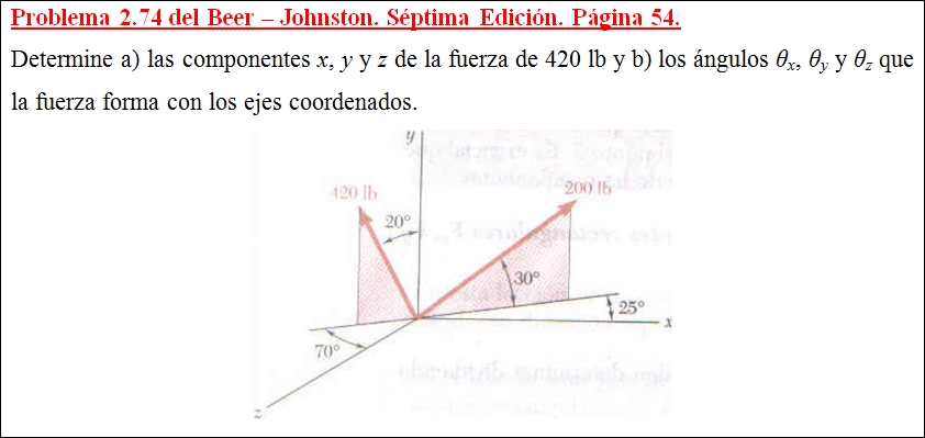 Determine a) las componentes x, y y z de la fuerza de 420 lb y b) los ángulos θx, θy y θz que la fuerza forma con los ejes coordenados.