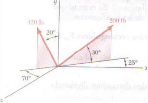 Determine a) las componentes x, y y z de la fuerza de 200 lb y b) los ángulos θx, θy y θz que la fuerza forma con los ejes coordenados.