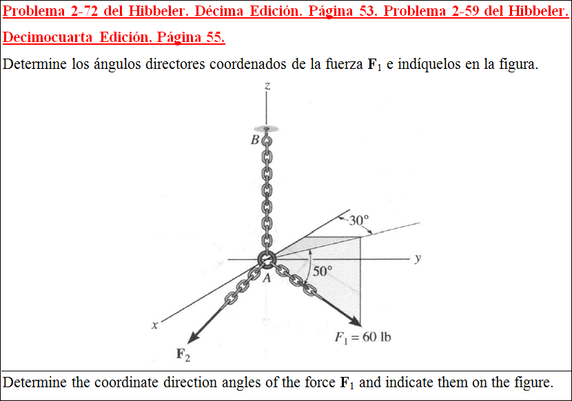 Determine los ángulos directores coordenados de la fuerza F1 e indíquelos en la figura.