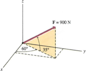 a. Determine las componentes escalares x, y y z de la fuerza.