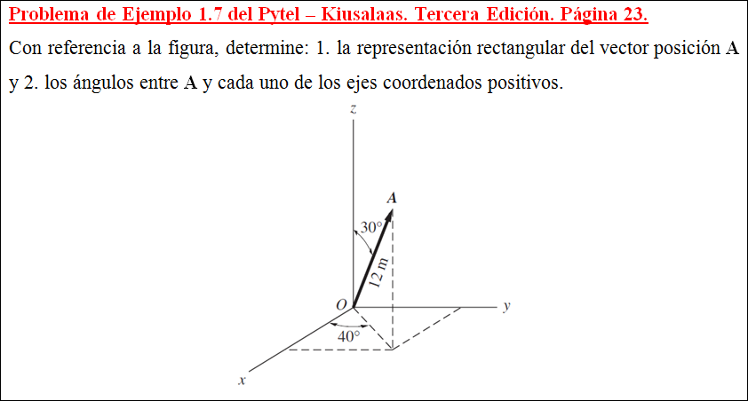 Problema de Ejemplo 1.7 del Pytel – Kiusalaas. Tercera Edición. Página 23.
