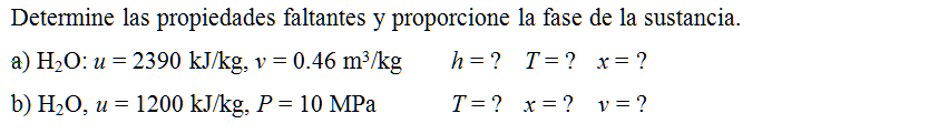 Determine las propiedades faltantes y proporcione la fase de la sustancia.